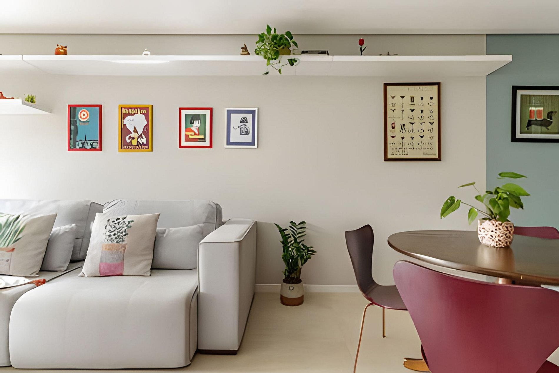 Espaço acomoda até 4 pessoas: 2 na cama queen e até 2 no sofá cama amplo da sala