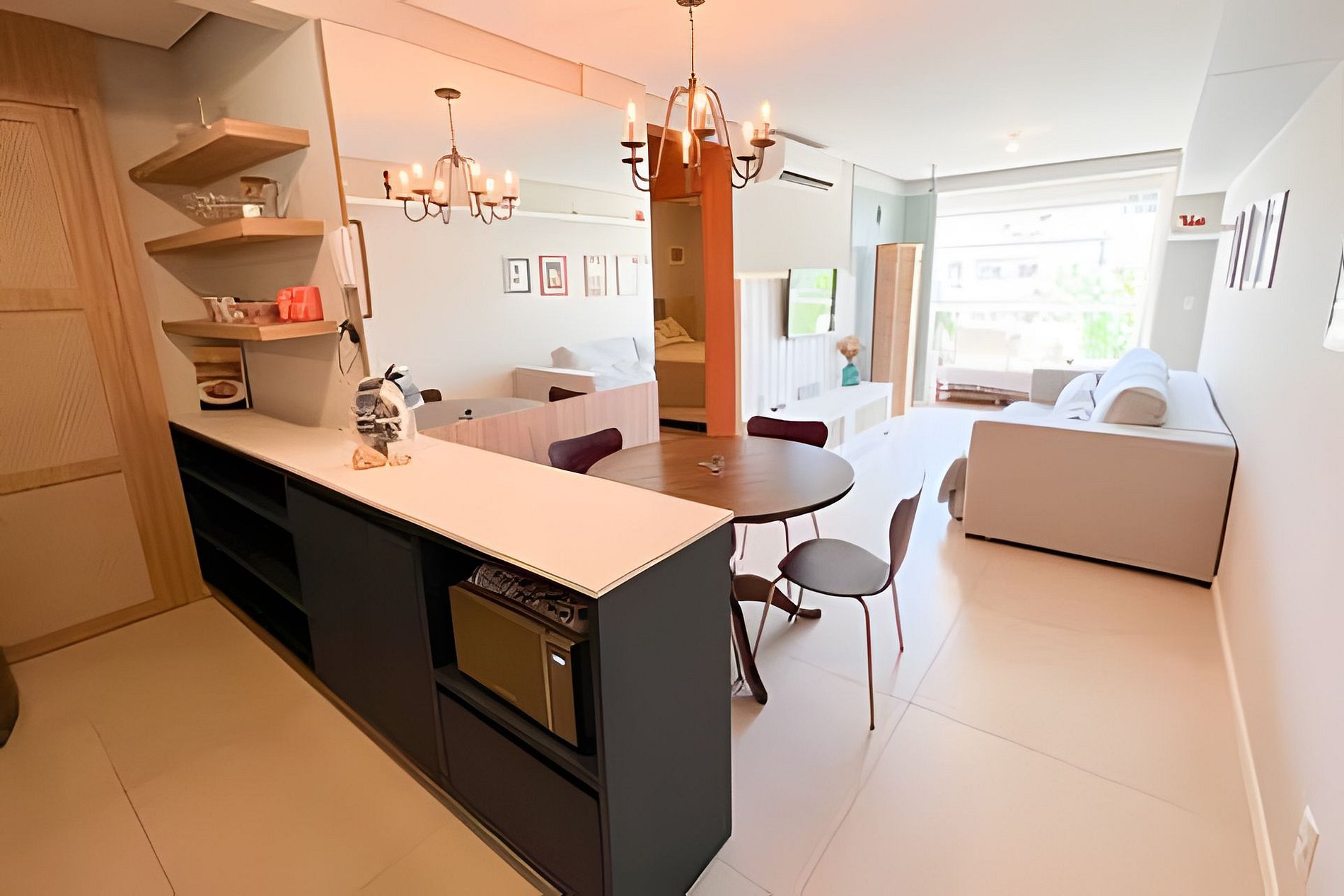 Apartamento aconchegante e com muito "borogodó" em condomínio Thai Beach Home Spa, alto padrão FRENTE MAR, piscina aquecida e spa.1 dormitório, sala integrada à cozinha, ambientes decorados e equipados para sua estadia ser perfeita.