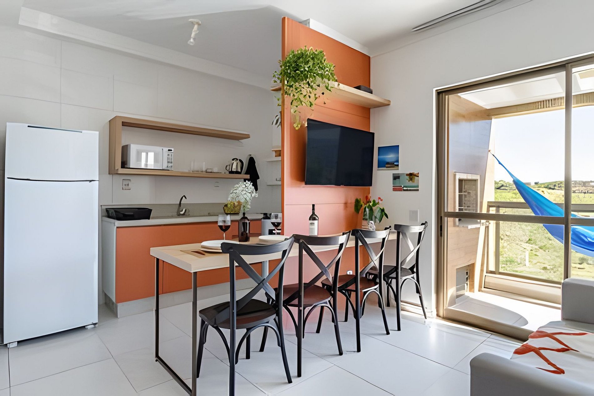 À pé se pode ir à praia, restaurantes, bares, padaria, mercado e farmácia, tudo com menos de 500 metros de distância. Há ponto de ônibus na avenida em que o condomínio fica situado.