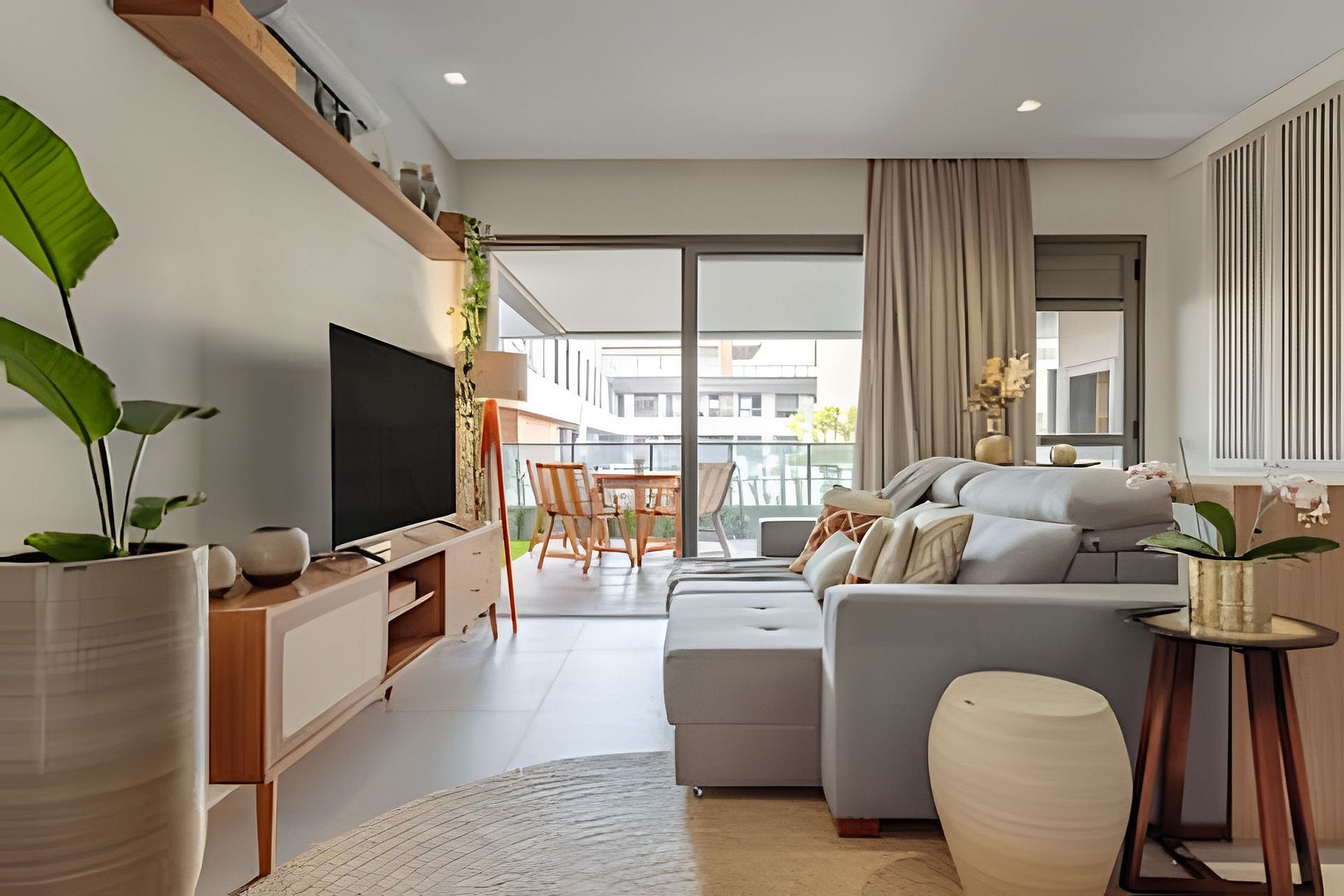 Sala: TV Smart, Ar-condicionado quente e frio, Sofá amplo e confortável