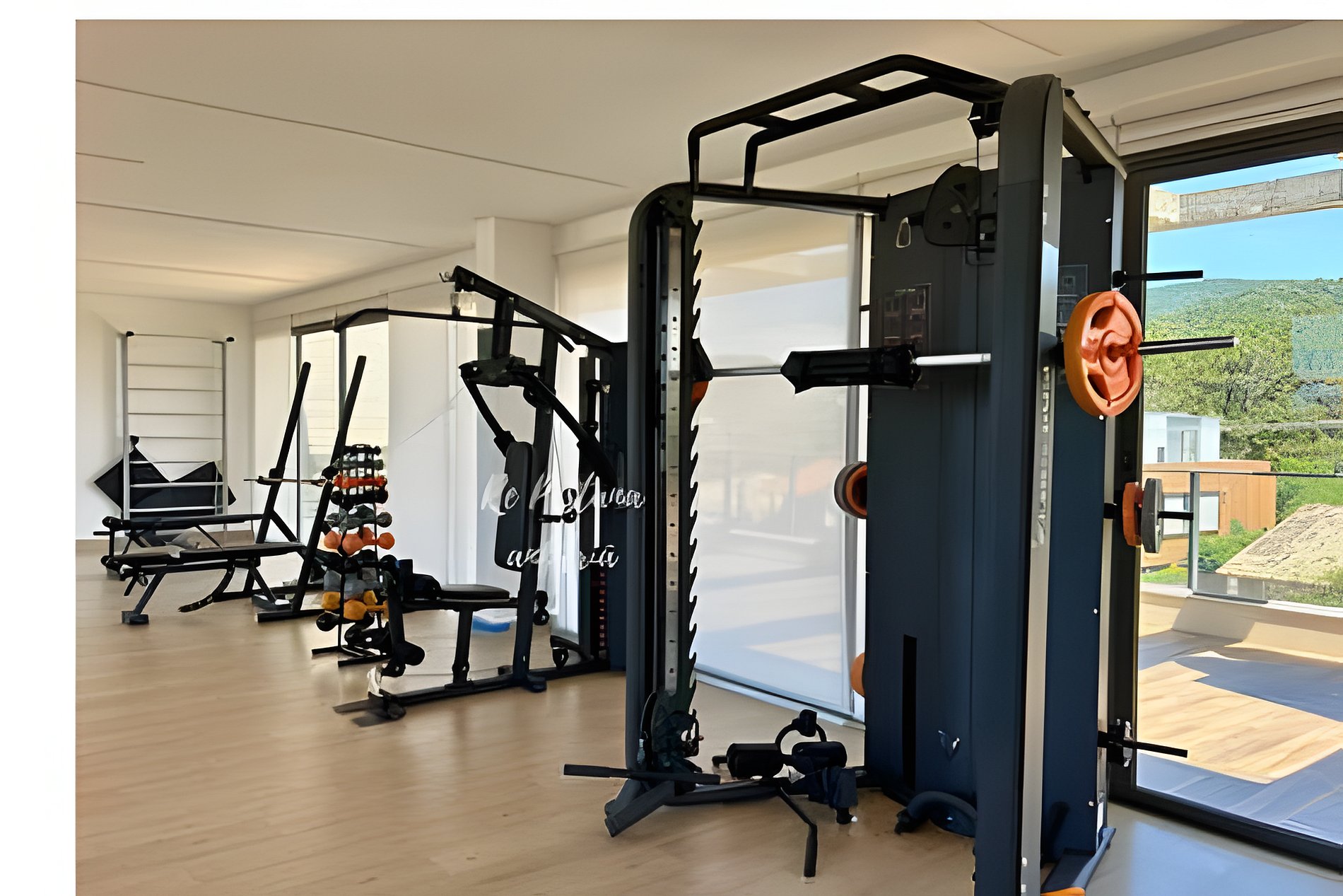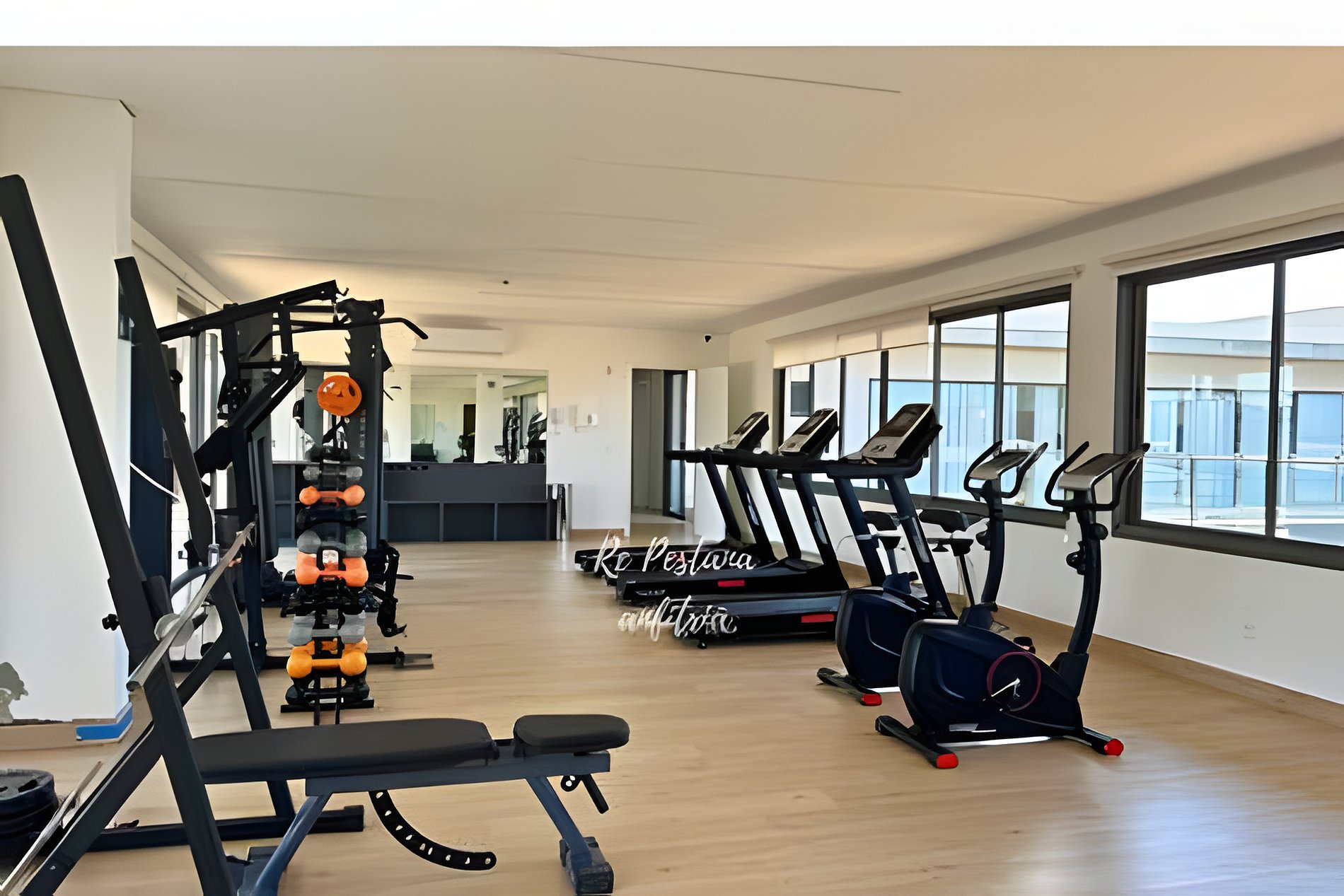 Academia: utilização permitida sem reserva prévia. Não é permitido ficar sem camisa.